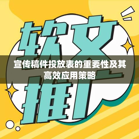 隨著信息技術的飛速發展,宣傳稿件的投放已成為企業、組織乃至個人推廣自身品牌、產品和服務的重要手段,投放宣傳稿件表作為一種有效的管理工具,能夠幫助我們系統地規劃和執行宣傳策略,從而達到預期的宣傳效果,本文將詳細介紹投放宣傳稿件表的作用、應用策略及其在實際操作中的注意事項。